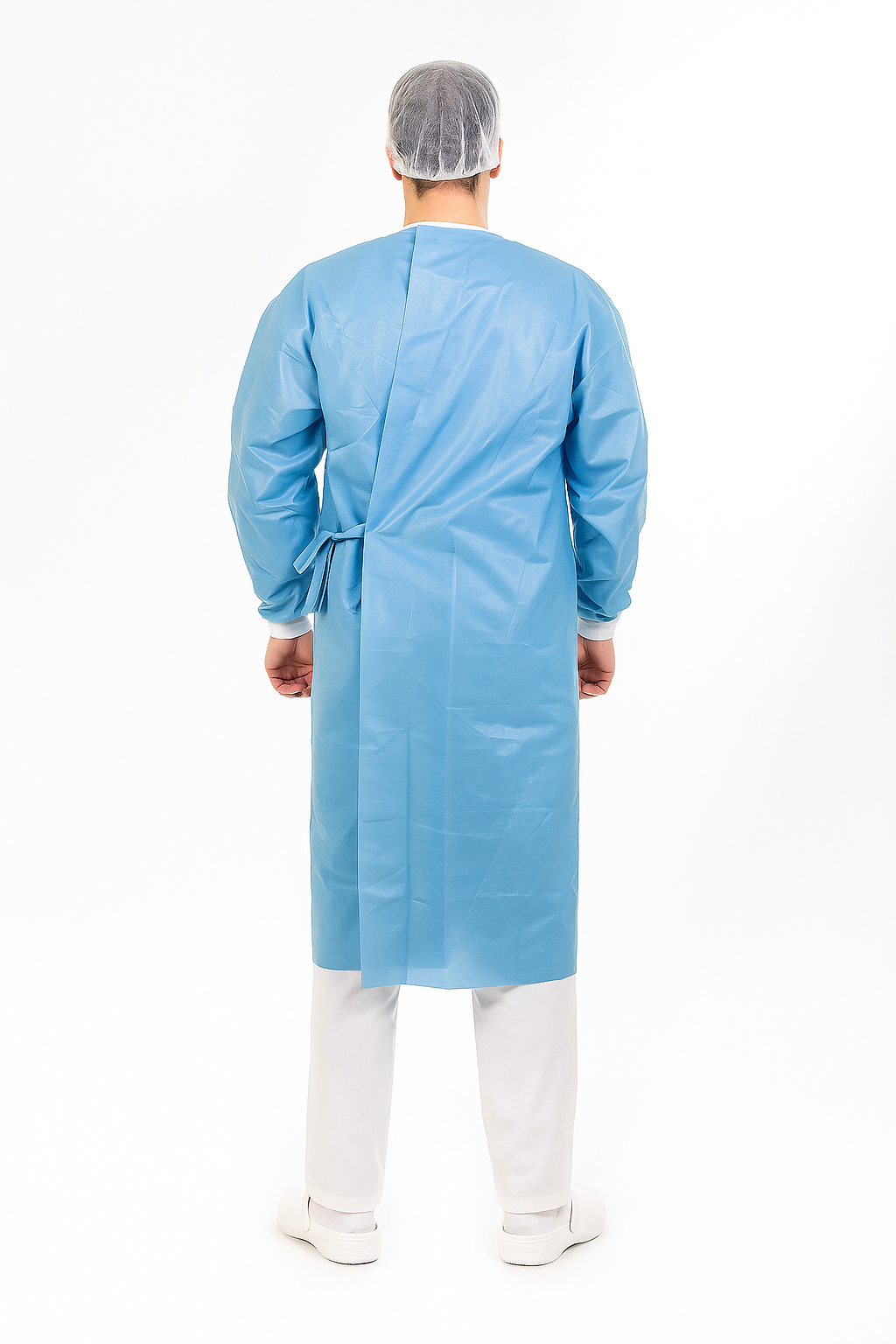 QUIRÚRGICA DE SMS+PE LAMINADO 55 GSM, BATA CIRÚRGICA EM SMS+PE LAMINADO 55 GSM, SURGICAL GOWN